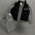 Alliez élégance italienne et confort absolu avec cet ensemble complet EA7 Emporio Armani, comprenant une doudoune matelassée sans manches, un sweat molletonné et un pantalon de jogging assorti.